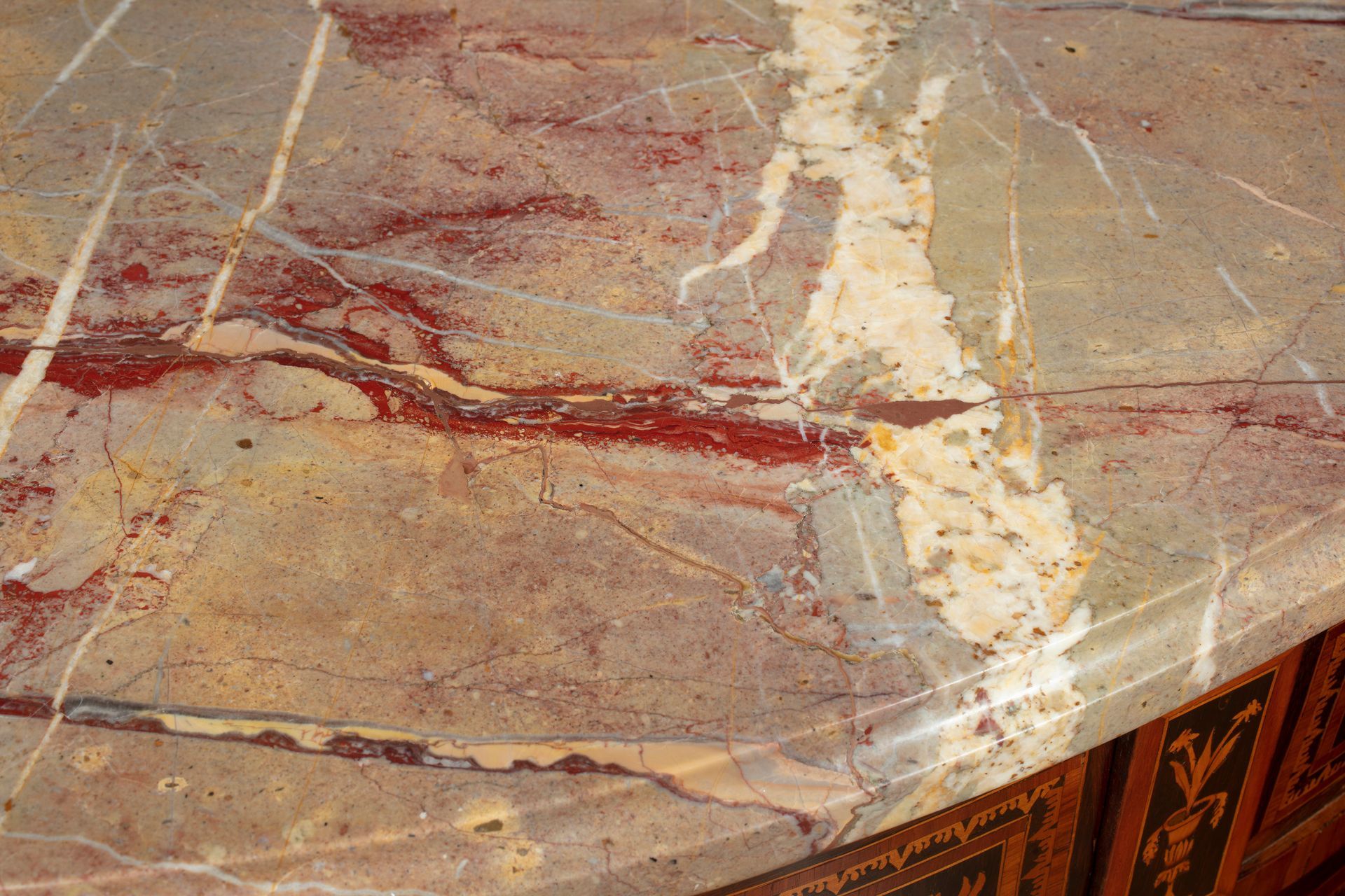 Noce, palissandro, acero e legni da frutto, piano in marmo.