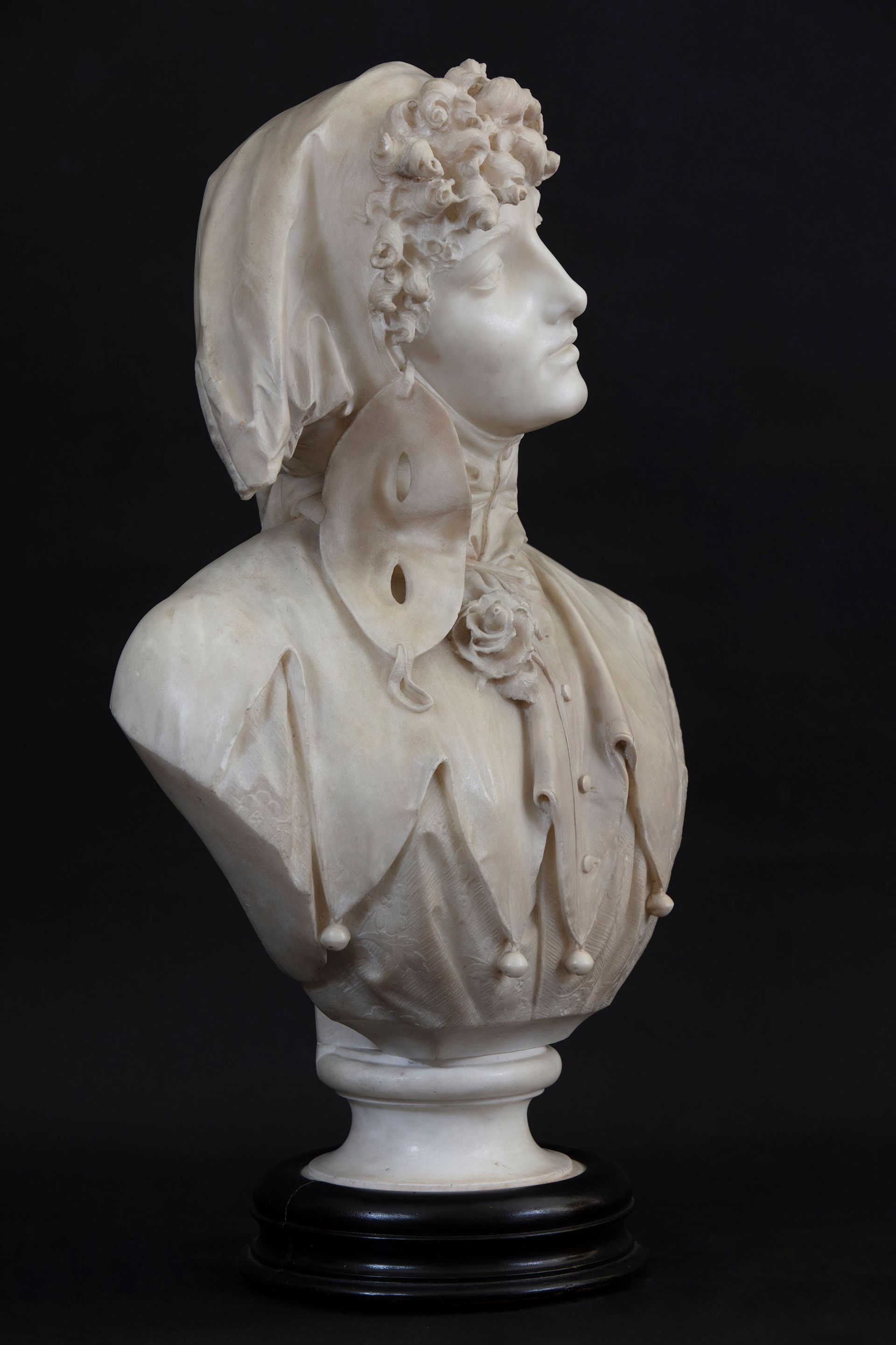 La scultura è credibilmente identificabile con il marmo "La toilette della maschera", inviata a Brera nel 1870, pur se l'opera reca la data 1871 probabilmente apposta in fase successiva.