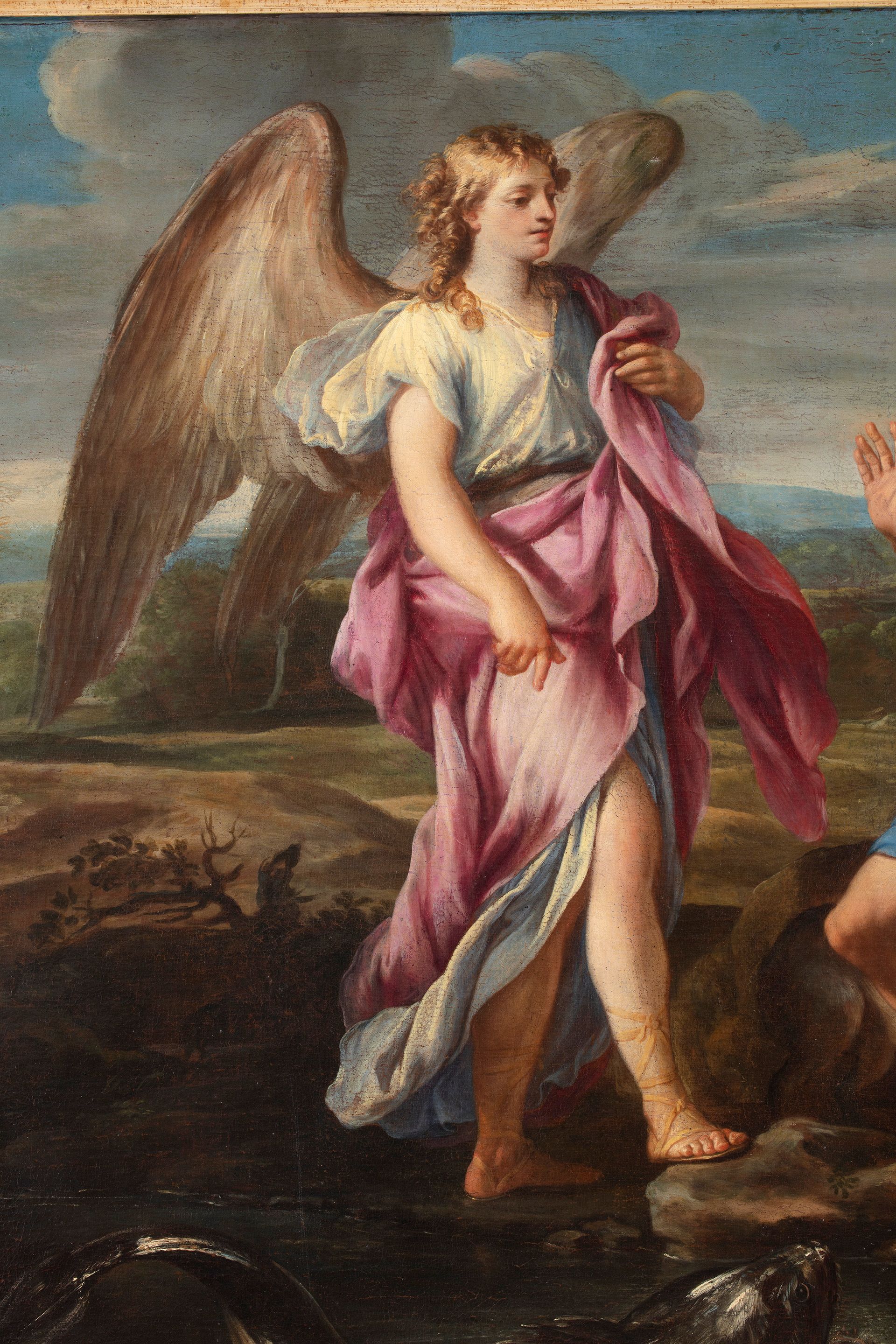 Grande dipinto olio su tela di Marco Benefial (Roma 1684-1764) raffigurante "Tobiolo e l'angelo".