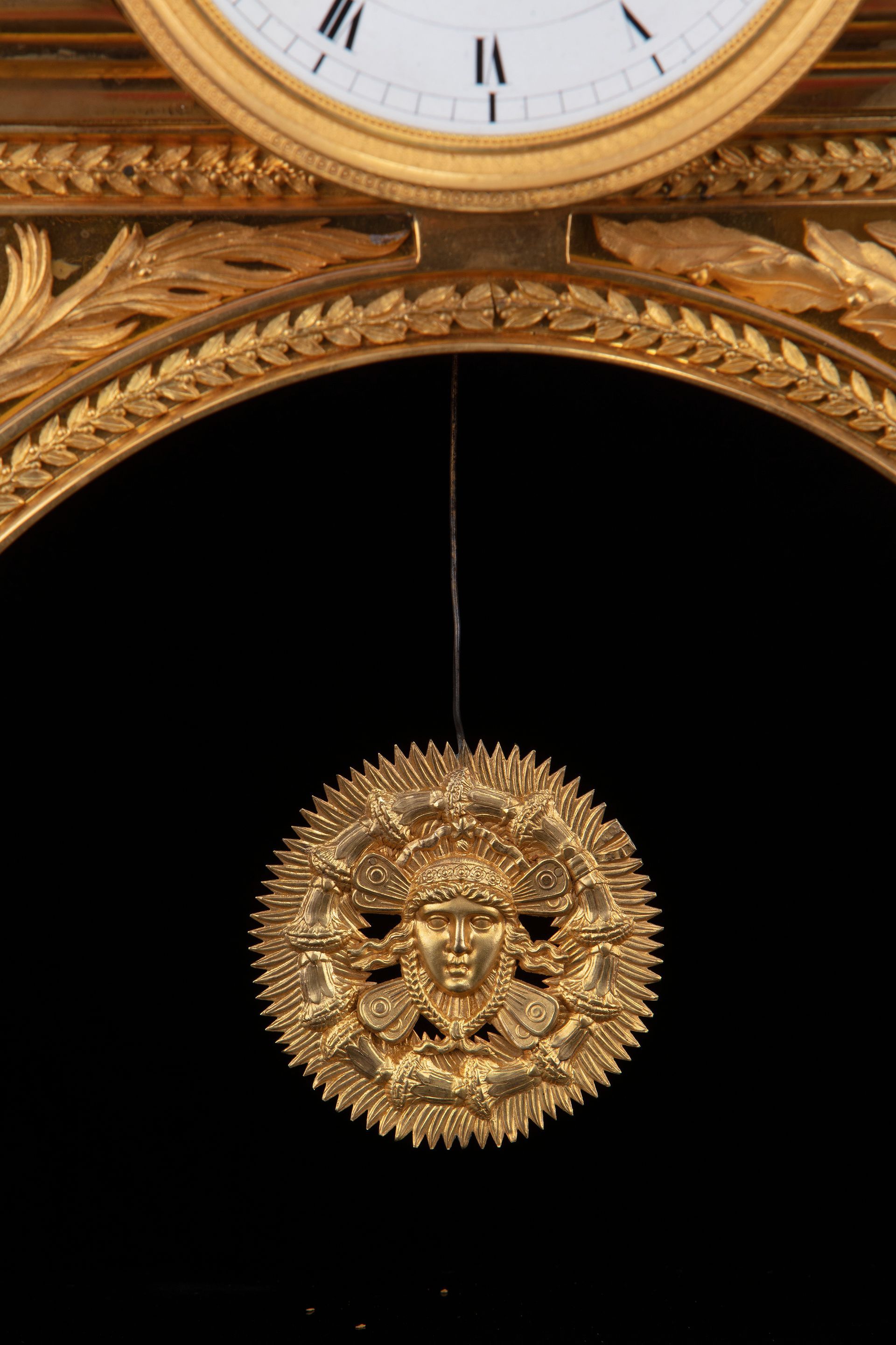 Il disegno preparatorio per questo modello di pendola, depositato al Cabinet des Estampes della Bibliothèque Nationale de France nel 1799, è del bronzista francese Jean-Simon Deverberie, uno dei bronzisti parigini più importanti della fine del XVIII secolo e i primi due decenni del XIX.