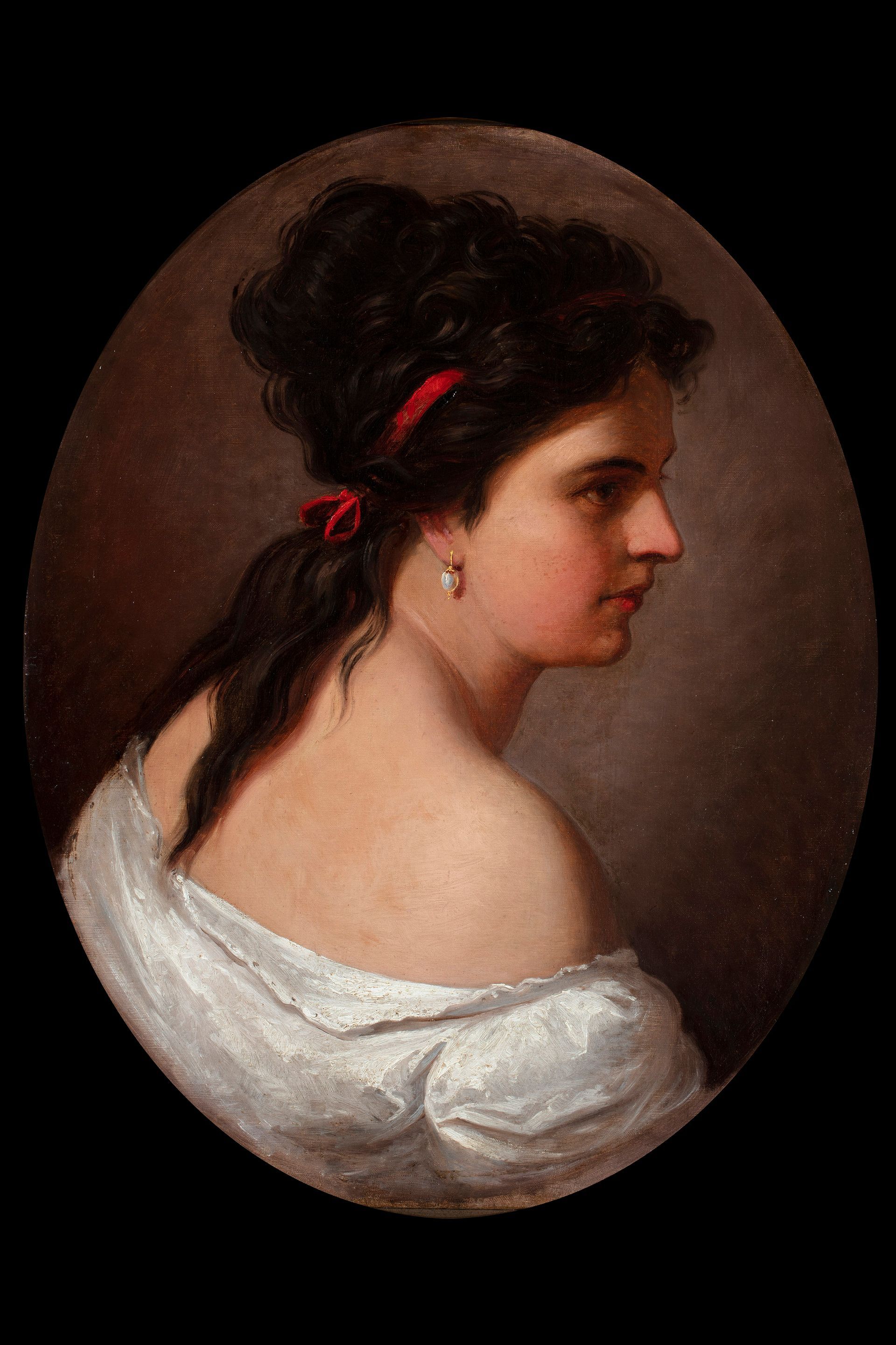 Scuola tedesca, “Profilo di fanciulla con nastro rosso”, seconda metà del XIX secolo.