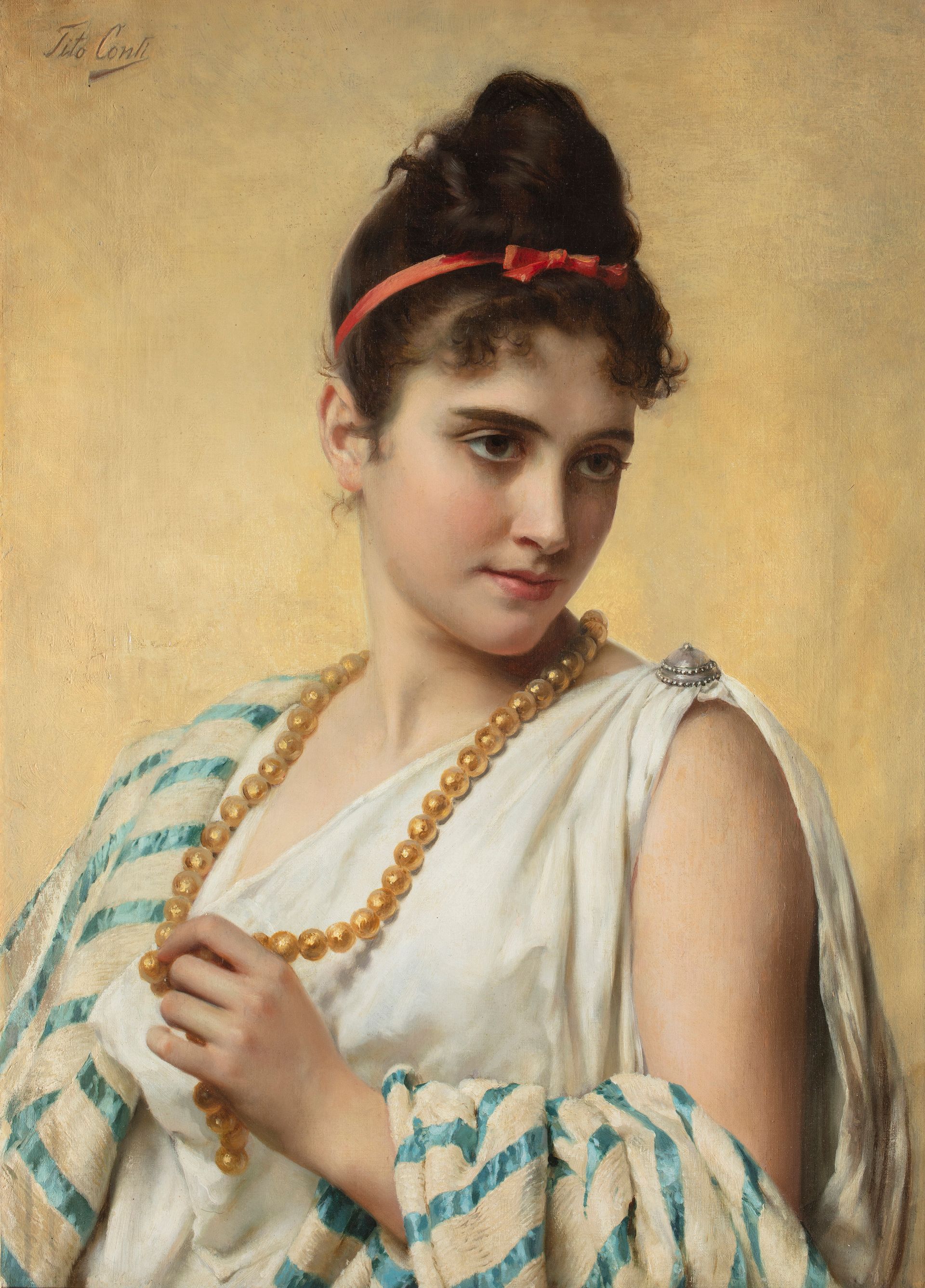 Tito Conti (Firenze 1842 - 1924), “La collana di perle”, 1880 circa.